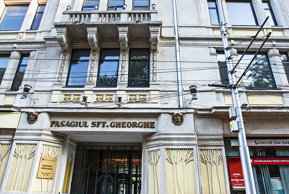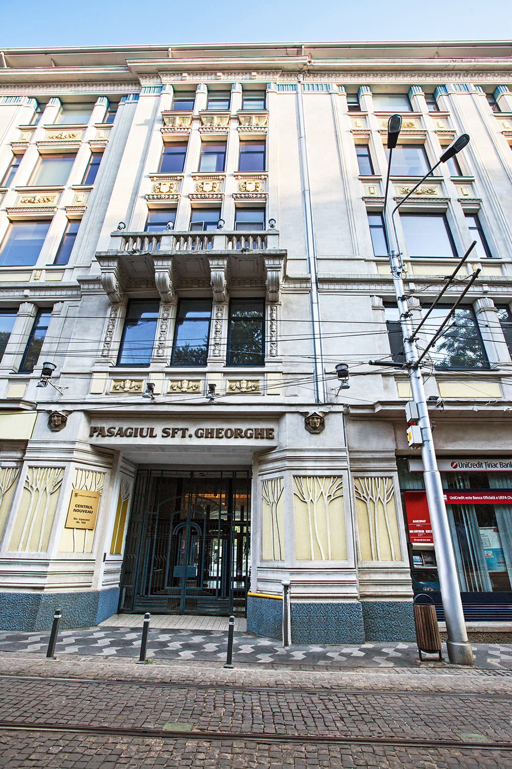 Arhitectura imobilului pastreaza elementele decorative stil Art Nouveau: spiritualitatea vechiului Egipt, prezenta prin capitelurile de papirus si statuile lui Osiris si Horus, Renasterea Italiana prin fantana arteziana in forma de cruce papala din axul pasajului. In holul cladirii se regasesc elemente moderne prin tablourile maestrul Art Nouveau, Alphonse Mucha, ale carui picturi amintesc de "Primavera" lui Boticelli.